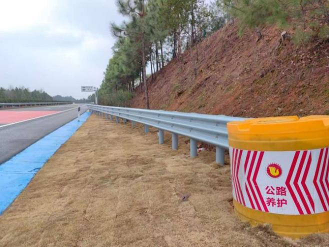 建设项目以“零亡人事故”为目标导向,实施安全设施升级 “四大工程”,构建起立体化安全防护体系。护栏升级工程将临水临崖路段原有2558米A级波形梁护栏全部提升为SB级波形梁护栏,278处迎车流方向端头外展处置,40座中央分隔带采用“梯形座式活动护栏”,防护等级提升至Am级,可有效拦截失控车辆穿越对向车道。标线施划工程在重点路段增设1500平方米标线,同时植入特别的材料,实现夜间发光警示。标志革新工程对3151处桩号牌进行规范设置、更新和传递,方便司乘人员准确清楚自己在公路上的位置,定位更精准。桥墩防护能力提升工程将10座桥梁墩柱迎车面原二波形护栏升级为BT-Qm护栏,既不容易被撞毁,又可对车辆和司乘人员起到非常好的保护作用。